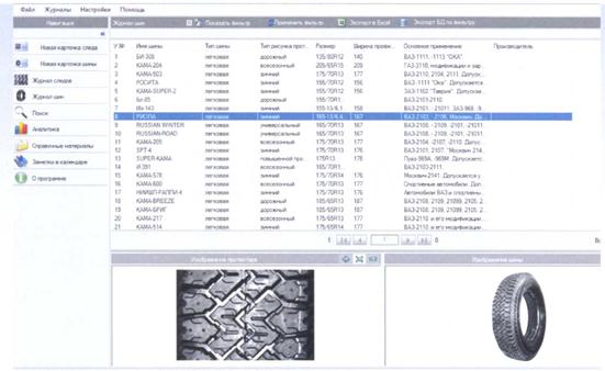 Данный программный продукт предназначен для сотрудников экспертно-криминалистических подразделений ОВД, специализирующихся на работе с картотекой следов шин, изъятых с мест нераскрытых преступлений, и образцов шин, имеющихся в торговой сети.