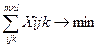 В качестве критерия оптимальности можно принять минимум общего числа рабочих Xijk: