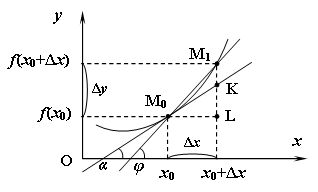 – угол наклона секущей к оси Ox. Тогда (см. рис. 15.1) угловой коэффициент секущей M0M1 равен