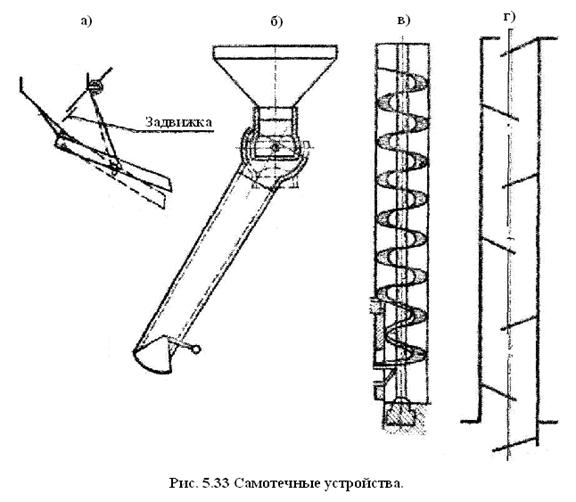 Большое применение в строительстве имеют самотечные устройства, по которым материалы перемещаются под действием силы тяжести. Такие устройства используют для спуска мусора из строящихся или ремонтируемых зданий, укладки материалов, подачи их в бункера или на конвейеры.