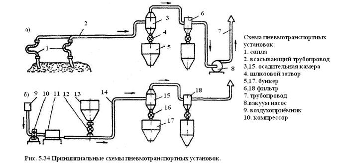 5.2.8 Пневматический транспорт - виды, назначение, принцип действия установки для автоматического транспортирования материалов.