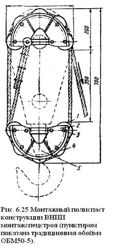 С целью сокращения длины монтажного полиспаста во ВНИИ монтажспецстрое разработана новая конструкция обойм блочных монтажных (рис.6.25).