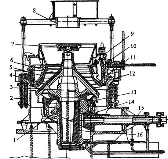 Рис. 10.12 Схема дробилки среднего и мелкого дробления.