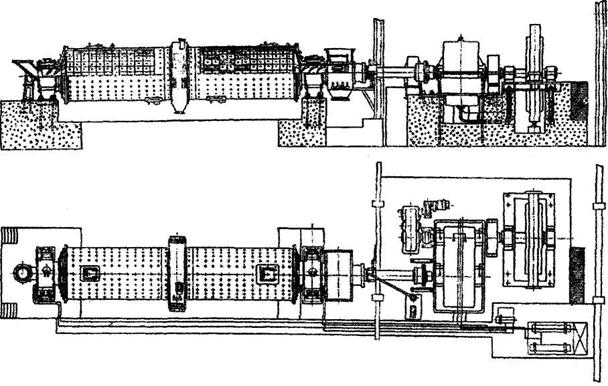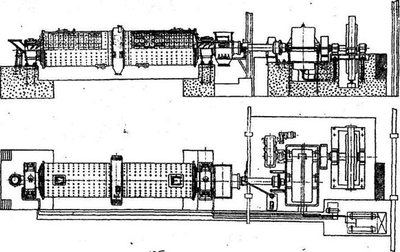 Во вращение барабан мельницы приводится от тихоходной синхронного двигателя мощностью 2000 квт при числе оборотов 1,67