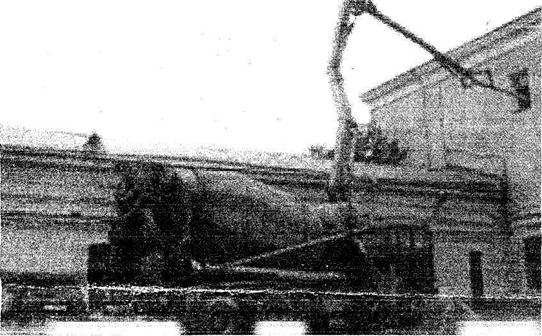 Рис. Схема использования автобетононасоса бетононасоса со стационарным бетоноводом и распределительной стрелой.