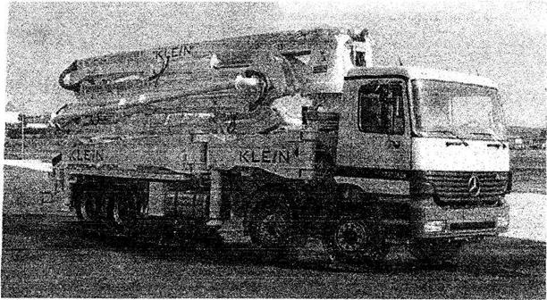 При возведении зданий и сооружений из монолитного бетона или железобетона для приема бетонной смеси от бетонотранспортных средств (например, «миксеров») и подачи их к месту укладки устанавливаются автобетононасосы (Рис. 11.25). При использовании стационарного (Рис. 11.24) бетоновода с бетонораспределительнои стрелой высота подачи смеси составляет до 80 м по вертикали. Автобетононасос эксплуатируется при температуре от -5 до +40 °С. В качестве базового шасси для автобетононасосов серий СБ и БН применяются автомобили КамАЗ-53213, Урал 4320-1912. На отечественный рынок также поставляются импортные автобетононасосы систем CIFA, Pulsar, «Пуцмайстер», Бетононасосы-прицепы являются стационарными устройствами для транспортирования бетонных смесей, в том числе и на значительные расстояния Существуют облегченные установки, которые можно поднимать на этажи здания Разновидностью данной техники являются установки для транспортирования пенобетонных смесей.