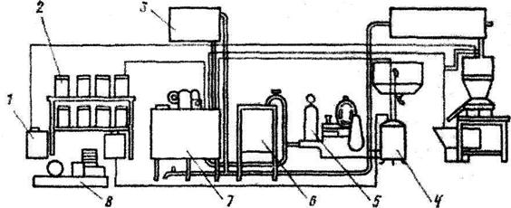 Рис. 12.13 Линия приготовления вводно-клеевых