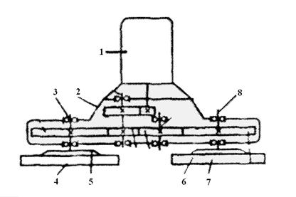 Рис. 12.30 Кинематическая схема дисковой затирочной машины.