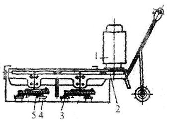 Для шлифования и полирования полов из мозаики, мрамора, гранита и т. п. материалов применяют мозаично-шлифовальные машины (Рис. 1232; 1233). Дприводимые в движение электродвигателем 1 или, реже, двигателем внутреннего сгорания через зубчатый редуктор 2.