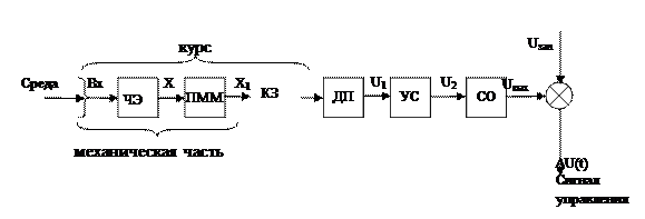 КЗ – колебательное звено. Включает динамические звенья (инерционное, демпфирующее, позиционное), смещение которого - X2преобразуется в электрический сигнал в ДП.