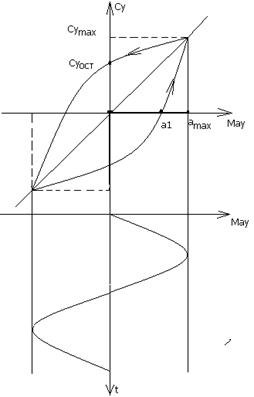 ay=Cy/M – калибровочная характеристика акселерометра при наличие упругого подвеса. В идеальном случае она линейна. Но реально при знакопеременной нагрузке появляется петля гистерезиса, площадь которой характеризует энергию рассеивания (диссипацию энергии) системы.