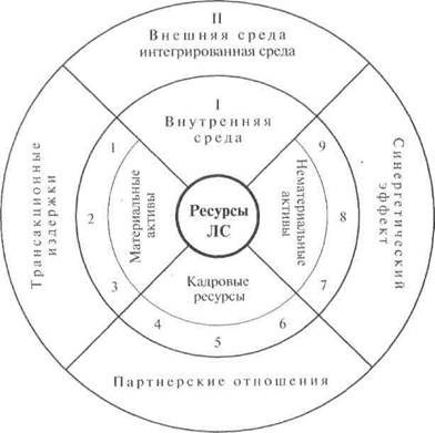 Материальные ресурсы — активы, которые отражаются в балансе компании (основные и оборотные средства, инвестиции). В цепях поставок (ЛС) в общем процессе создания ценности для потребителя задействованы многие организации. Поэтому ресурсы каждой из них вносят свой вклад в конечный результат, имея при этом свои особенности. При интеграции ключевых бизнес-процессов этих организаций (концепция SCM [6]) использование различных видов ресурсов приходится, как правило, рассматривать через призму партнерских отношений с учетом особенностей контрактных соглашений. Пространственные особенности экономики отражаются прежде всего в трансакционных издержках. Известно, что материальные и финансовые активы, а также способность рационально их использовать определяют стоимость компании. Применительно к стоимости Л С их необходимо рассматривать в совокупности с трансакционными издержками (см. рис. 1.3).