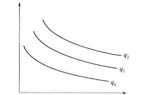 Путем горизонтальных разрезов, соответствующих разным уровням производства, можно осуществить переход к карте изоквант производственной функции, где каждая изокванта отражает комбинации затрат ресурсов, позволяющие получить одинаковый объем продукта {qvq2, q3) (рис. 1.4).