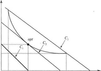 Рис. 1.9. Определение оптимальной комбинации факторов производства