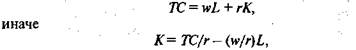 Уравнение валовых издержек {ТС), учитывающее затраты на оплату труда (wL) и оплату капитала (гК), имеет вид: