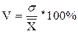 где V - коэффициент вариации, проц.