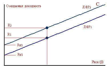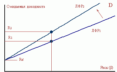Рис. 7.1B Соотношение доходности и систематического риска: Движение вдоль ЛФР.