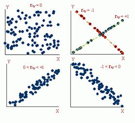 Рис. 7.8. Диаграммы рассеяния при различных значениях коэффициента корреляции.