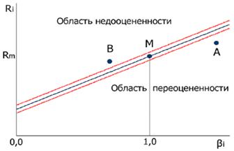 Рис. 7.12 Линия фондового рынка: области недооцененности и переоцененности