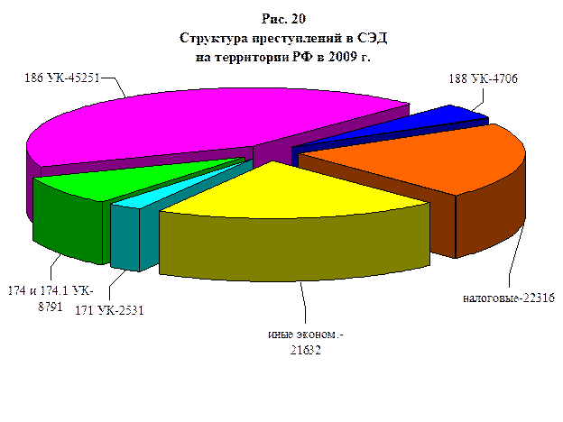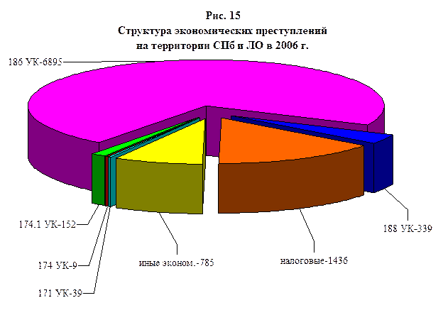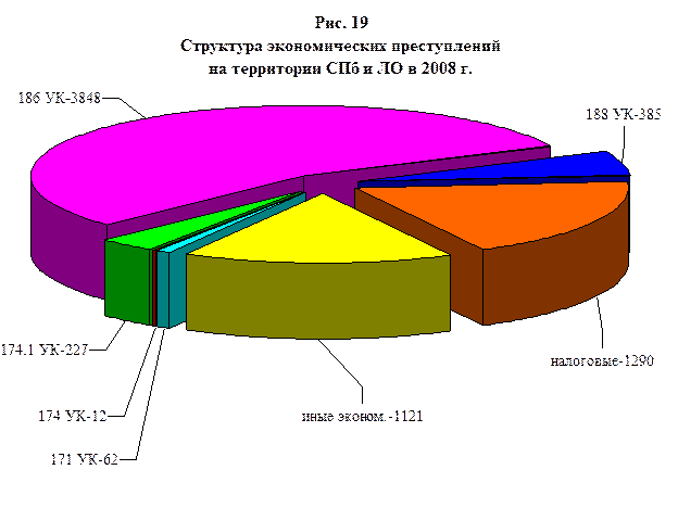 Перед рассмотрением вопросов об организации отдельных видов преступлений, приведем структуру самих преступных деяний как в целом по России, так в Санкт-Петербурге и Ленинградской области, в частности за 2006-2010 гг. на рисунках №№ 14-23.