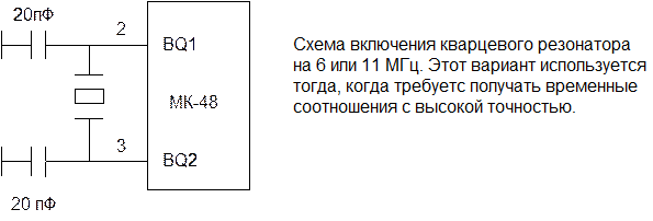 Опорная частота fBQ1(6 МГц) делится на 3 для получения внутренней частоты синхронизации fCLK = 2 МГц. Сигналы CLK могут быть выведены на внешний вывод T0 по команде ENTO CLK.