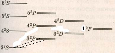Например, в атоме натрия разрешен переход с подуровня 3 р (дублетный терм 32 Р 3/2,1/2)на подуровень 3 s (синглетный терм 32 S 1/2). Этот переход вызывает появление в спектре натрия двойной желтой линии (дублета). Этот переход полностью соответствует правилам отбора. В соответствии с первым правилом разрешены переходы Р –S. Согласно второму правилу D J может равняться ±1, как при переходе 32 Р 3/2 - 32 S 1/2, или 0, как при переходе 32 Р 1/2 - 32 S 1/2. Не нарушается и третье правило, так как формальная мультиплетность терма 32 S 1/2 равна 2.