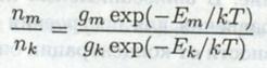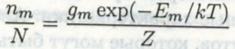 где k — константа Больцмана (k = 1,380×10-23 Дж/К = 0,695см-1× К-1 = 0,8617× 10-4 эВ/К), Т — температура источника излучения и g — статистический вес (2 J + 1), J — квантовое число полного электронного углового момента.