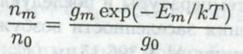 Связь между заселенностями различных уровней была описана Больцма-ном. Если рассматривать заселенности пт и пk уровней Ет и Ek соответственно, то их отношение определяется уравнением Больцмана:
