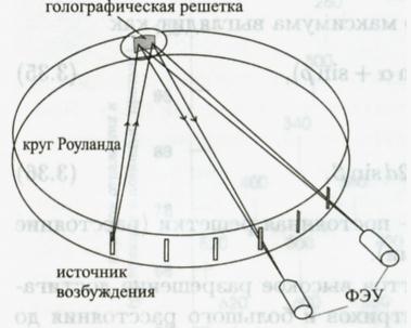 Рис. 2.11. Многоканальный спектрометр с монохроматором Пашена-Рунге на основе круга Роуланда.