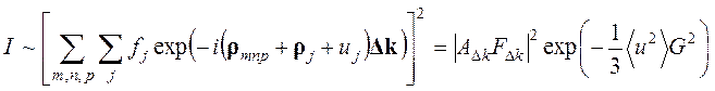При учете конечной температуры Интенсивность пиков пропорциональна квадрату амплитуды, структурного фактора рассеяния и фактора Дебая-Уоллера