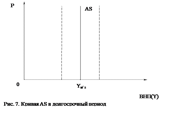 Долгосрочный период – период в течении которого, происходит полная адаптация цен и цены являются абсолютно гибкими. Уровень цен на экономические ресурсы согласуется с ценами на конечную продукцию, поэтому AS не реагирует на изменение общего уровня цен. AS является абсолютно неэластичным.