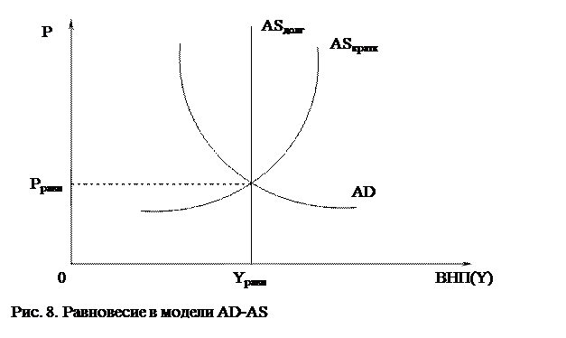 Модель «AD-AS» является синтезом кейнсианского и неоклассического направления. Общим условием равновесия в экономике будет равенство совокупного спроса и совокупного предложения.