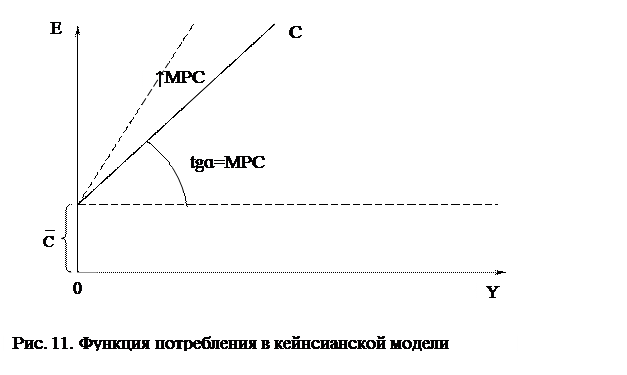 С ростом располагаемого дохода потребительские расходы растут. Связь между потреблением и доходом выражается функцией потребления, имеющей вид: