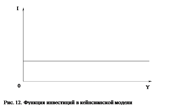 В кейнсианской модели уровень инвестиций не зависит от получаемого национального дохода и кривая инвестиционных расходов имеет вид, представленный на рисунке 12.