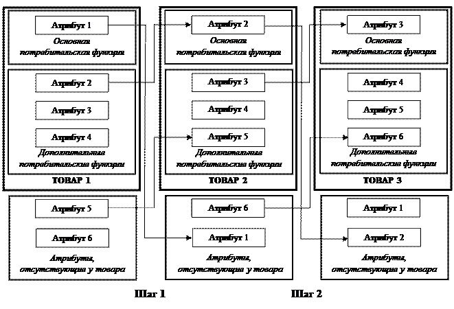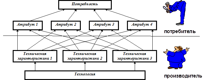 Различаемые покупателем свойства товара, обуславливающие его полезность или имеющие иное значение для покупателя, называются атрибутами товара. Атрибуты следует отличать от технических характеристик товара – его объективных свойств, которые могут и не различаться покупателем, если не связываются им с теми или иными потребностями. Так, на упаковках с пищевой продукцией обозначен ее состав: количество белков, жиров, углеводов и др. Однако мало кто из покупателей способен оценить этот состав и на его основе выбрать товар. Покупатель будет различать острое и пресное, сладкое и кислое, продукты будут различаться им по цвету, запаху, другим признакам, но не по составу. Таким образом, технология обеспечивает определенный состав продуктов, а покупатель оценивает совсем другие свойства, хотя и определяемые составом. Еще более наглядным может быть пример из парфюмерной промышленности: состав духов – секрет производителя, а покупателя интересует только запах.