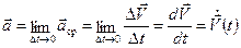 Предел среднего ускорения при D t ® 0 называется вектором мгновенного ускорения частицы в момент времени t.