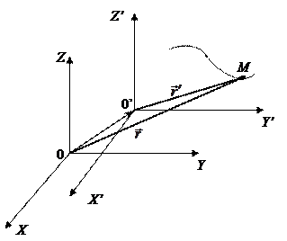 Запишем движение точки М в этих двух системах, задав это движение радиус-векторами
