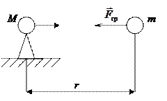 Пример 2. Вычислим энергию гравитационного притяжения двух частиц массой М и т, расположенных на расстоянии r друг от друга (рис. 6.8). Энергия такой системы считается, обычно, равной нулю, когда частицы разведены на бесконечность. Значит потенциальная энергия заданной системы равно работе, которую совершает гравитационная сила притяжения при удалении, например, массы m в бесконечность. При этом положение массы М будем считать неизменным.