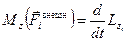 В левой части этого уравнения — момент внешних сил относительно оси z, действующий на частицу mi. Справа — производная по времени проекции момента импульса частицы на ту же ось.