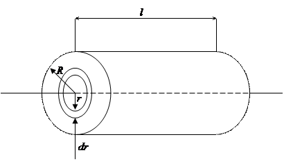 Пусть M — масса, а R — радиус цилиндра (рис. 9.4). Выделим в этом цилиндре цилиндрический слой радиусом r и толщиной dr. Масса этого слоя: