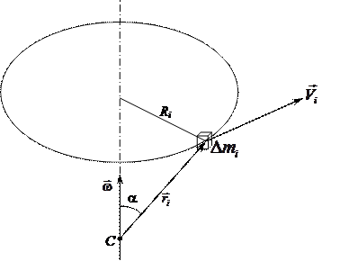 где Ri — радиус круговой траектории частицы D mi, или, что то же самое, — её расстояние от оси вращения.