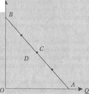 Графический способ вычисления ценовой эластичности спроса представлен на рис. 2.9. Предположим, что необходимо найти ценовую эластичность спроса в точке С. Для этого через эту точку проведем касательную к кривой спроса и получим точки ее пересечения с осями координат А и В. Доказано, что ценовая эластичность спроса равна отношению длин отрезков, на которые точка С делит отрезок АВ, а именно: