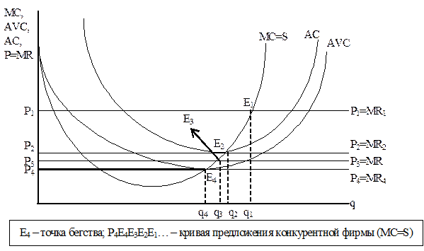 Рис. 15. «Точка бегства» и кривая предложения конкурентной фирмы