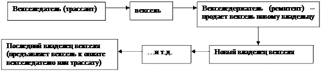 Векселедатель и векселедержатель (в случае простого векселя), а также трассант, ремитент и трассат (в случае переводного векселя) являются субъектами вексельного обращения. Если вексель покупает новый владелец, то в текст векселя вносится так называемая передаточная надпись - индоссамент. Продавец векселя называется индоссантом, а покупатель – индоссатом.