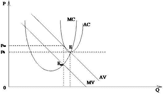 Мы знаем, что экономическая эффективность требует тройного равенства – цены, предельных издержек и средних издержек. Равенство цены и предельных издержек необходимо для достижения эффективного использования ресурсов. Равенство цены с минимальными средними валовыми издержками предполагает высокую производственную эффективность, использование наиболее эффективной (или – наименее затратной) технологии. Данное равенство означает, что потребители получат наибольший объем продукции по самой низкой цене, которую будут допускать существующие издержки.