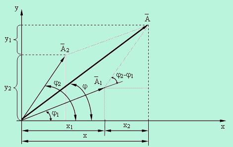 По теореме косинусов А2 = А21 + А22 + 2А1А2 cos (j2 - j1)/