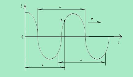 Рис 12.1. График волны дает зависимость смещения всех частиц среды от расстояния до источника в данный момент времени.