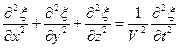 Распространение волн в однородной изотропной среде, в общем случаи, записывается уравнением в частных производных: