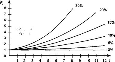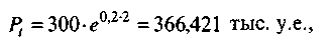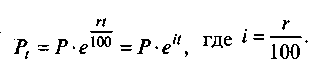 Например, при годовой ставке i = 100% можно к концу второго года получить Р = Ре2 =Р • 7,41, т.е. увеличить начальный вклад более чем в семь раз.