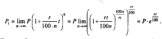 До сих пор мы рассматривали случаи дискретного начисления процентов. Представляет интерес определить процент как результат непрерывного начисления.